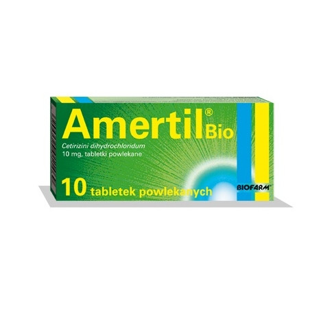 Substancją czynną leku Amertil Bio jest cetyryzyny dichlorowodorek. Jedna tabletka powlekana zawiera 10 mg cetyryzyny dichlorowodorku.