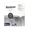 Substancja czynna leku Biosteron 25 mg to dehydroepiandrosteron (DHEA). DHEA jest nieaktywną substancją wykorzystywaną do syntezy hormonów płciowych. W różnych tkankach (np. gruczoł sutkowy, gruczoł krokowy, narządy rodne, mięśnie szkieletowe, kości) DHEA ulega przemianie do estrogenów – u kobiet i androgenów – u mężczyzn. Największe stężenia DHEA w surowicy występują w okresie młodości (2 i 3 dekada życia), po czym następuje powolny spadek jego stężeń we krwi tak, że u osób w wieku 80 lat DHEA stanowi zaledwie ok. 10-20 % stężenia hormonu występującego u trzydziestolatka. Badania eksperymentalne oraz badania kliniczne (wykonane u ludzi) wskazują, że niedobór DHEA może być przyczyną niekorzystnych zjawisk związanych z procesem starzenia się jak np.: