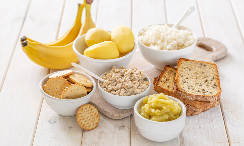Delikatne dla układu pokarmowego są tosty i sucharki, które są łatwostrawne, natomiast marchewka ugotowana z niewielkim dostatkiem soli, nie tylko dostarczy sodu i potasu, ale w warzywie tym znajdują się pektyny regulujące pracę jelit. Ważne jest dostarczanie produktów białkowych zawartych w gotowanym, chudym mięsie jak kurczak, indyk czy cielęcina oraz jaja gotowane na twardo.