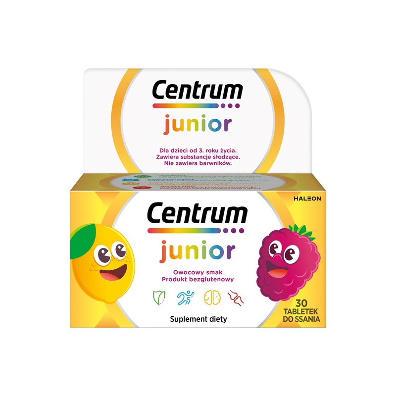 Centrum Junior do ssania zawiera witaminy i minerały niezbędne dla prawidłowego rozwoju dzieci. Działanie witaminy D zawartej w produkcie wspiera odporność i zdrowie kości, natomiast żelazo zawarte w Centrum Junior wspomaga rozwój funkcji poznawczych i sprawność umysłową dzieci. Natomiast witaminy z grupy B, poprzez usprawnienie metabolizmu węglowodanów, pomagają w uwalnianiu energii.