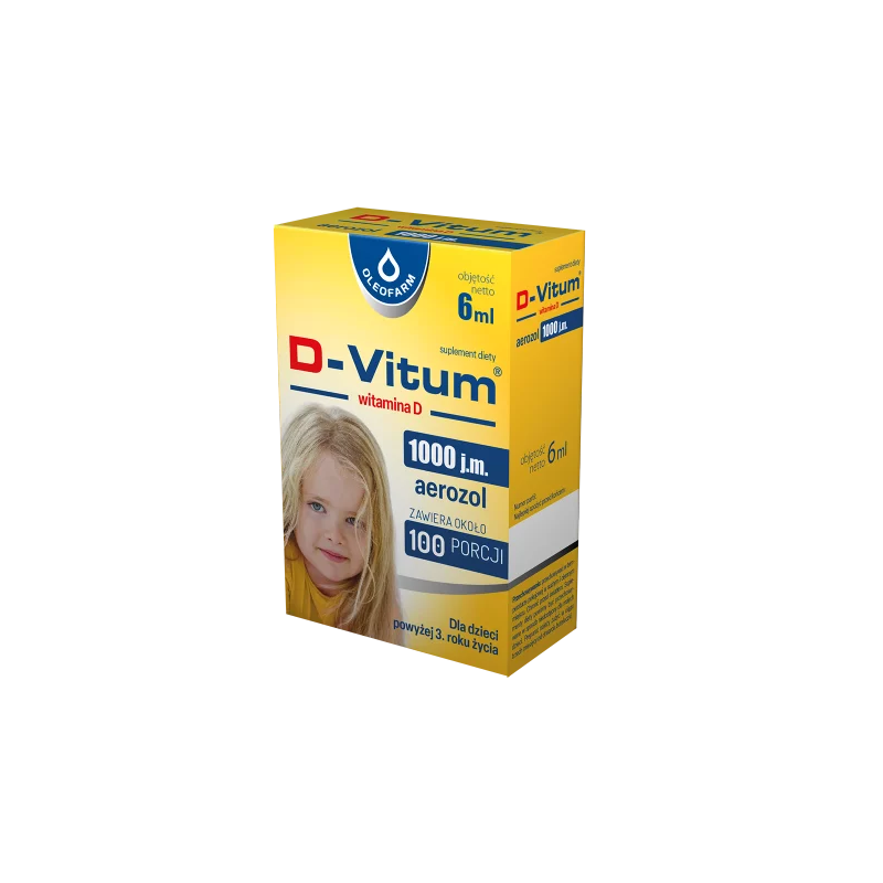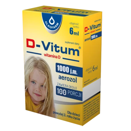 Produkt zawiera jedną z jej form chemicznych — cholekalcyferol. Jedna porcja (naciśnięcie pompki dozującej) to 25 µg witaminy D, co odpowiada 500% jej Referencyjnej Wartości Spożycia.