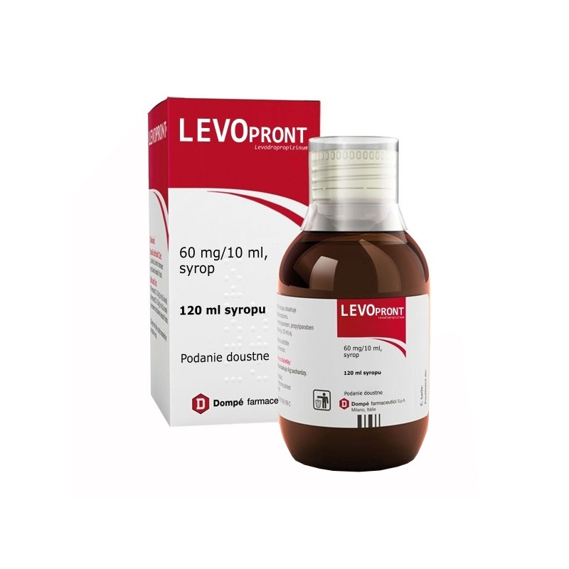 Levopront syrop 60 mg/10 ml to lek, który swoje działanie zawdzięcza lewodropropizynie, która charakteryzuje się głównie działaniem obwodowym przeciwkaszlowym oraz działaniem przeciwuczuleniowym i znoszącym skurcz oskrzeli; u zwierząt stwierdzono także działanie miejscowo znieczulające leku. Lewodropropizyna szybko wchłania się po doustnym podaniu u ludzi i ulega szybkiej dystrybucji w organizmie. Lek wydalany jest głównie z moczem w postaci niezmienionej oraz w postaci metabolitów.