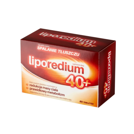Liporedium 40+ to suplement diety o podwójnym działaniu. Preparat wspomaga walkę z nadprogramowymi kilogramami poprzez zmniejszenie apetytu oraz wspieranie spalania tłuszczu, a także wywiera pozytywny wpływ na metabolizm u osób po 40-tym roku życia.