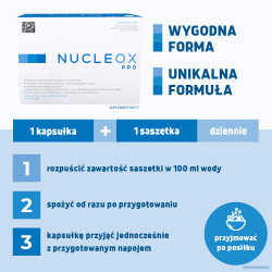 Kapsułkę NUCLEOX PRO spożywać jednocześnie z przygotowanym napojem z saszetki.