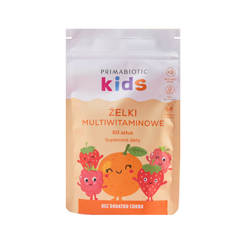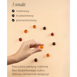 Suplement diety w postaci żelków pektynowych, w trzech smakach: malinowym, truskawkowym i pomarańczowym, przeznaczony dla dzieci powyżej 3 roku życia.