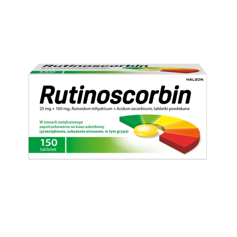 1 tabletka zawiera: substancje czynne: 25mg rutozydu, 100mg kwasu askorbowego oraz substancje pomocnicze: laktozę jednowodną, skrobie ziemniaczaną, sacharozę, alkohol poliwinylowy, talk, magnezu stearynian. W skład otoczki tabletki wchodzi: Opadry II 85F32876 żółty (alkohol poliwinylowy, makrogol 4000, tytanu dwutlenek (E171), talk, żółcień chinolinowa E104).